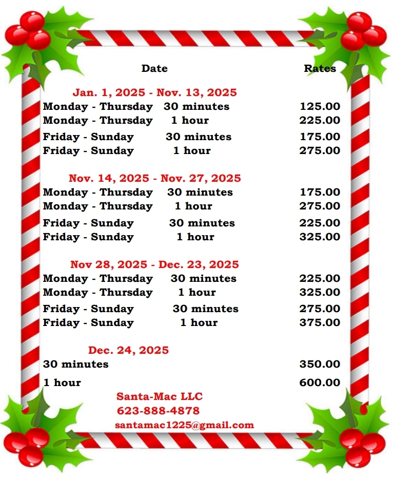 “Anyone who wants a passionate and engaging Santa look no further! It was a joy working with Santa Mac LLC from start to finish. Great communication, fair prices, and most importantly, top-notch appearance and character! Thanks so much for bringing all of the smiles to Mesa Cars & Coffee this year.”